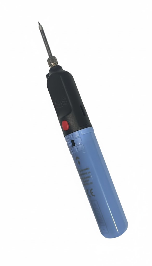 מלחם נייד קומפקטי הפועל על סוללות, אידיאלי לתיקונים בשטח או תיקוני חירום.